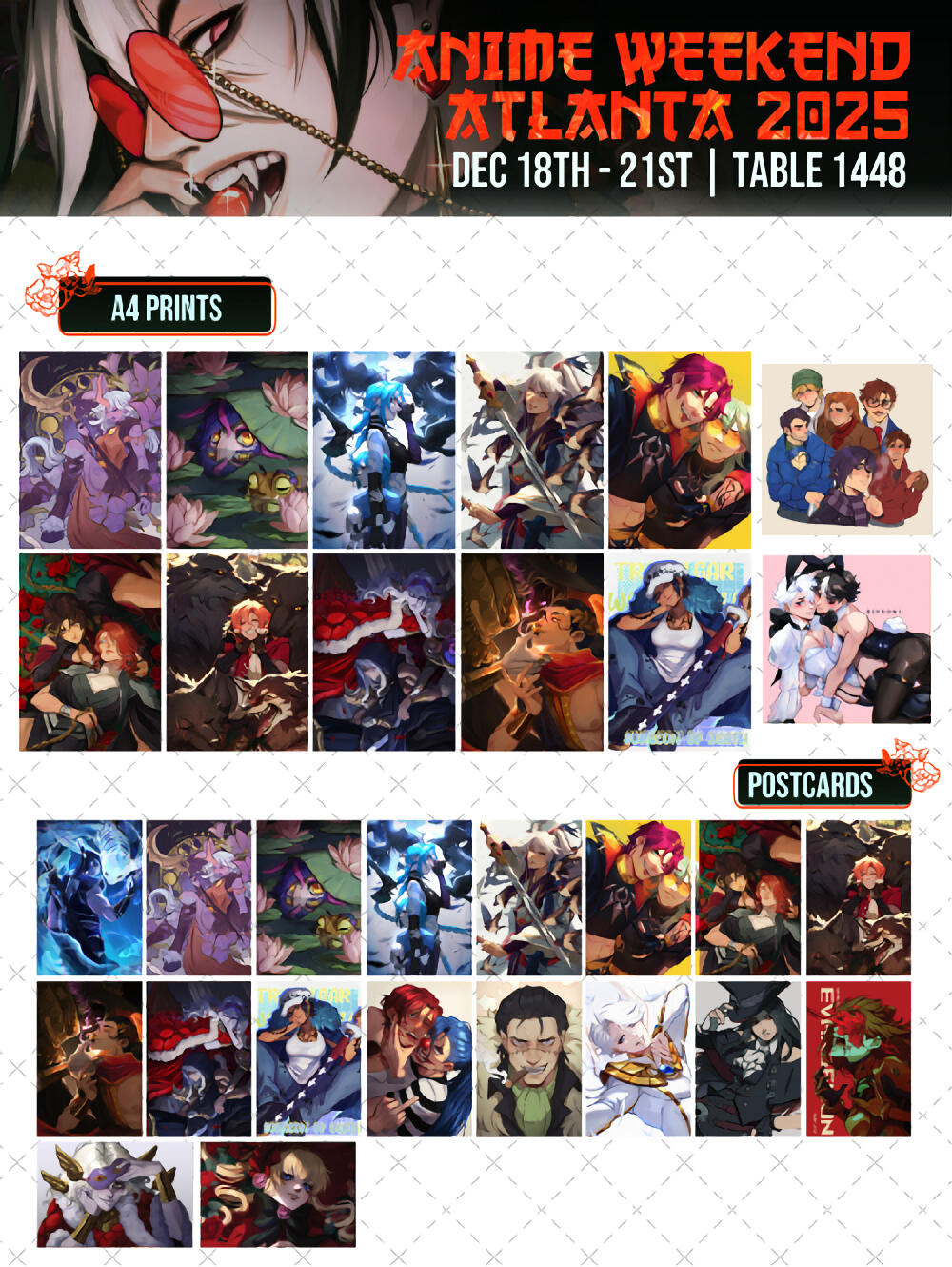 Portfolio for Artist Alley tabling! This is a general application page; everything will be adjusted in accordance with the convention's rules and the provided table size.But hello! I am bekkomi, an artist from the metro Atlanta area. I mainly draw art of video games, Japanese animation, some Chinese IPs, and occasionally my own designs!I can be found on any social media of the same name: bekkomi